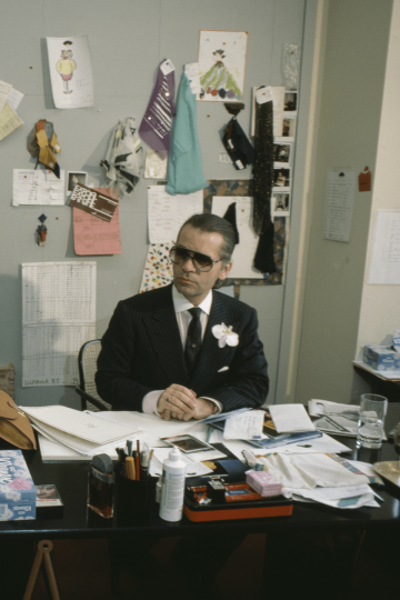 Karl měl jako mladý muž tmavé kudrnaté vlasy. Ty ale neměl nijak v oblibě, a tak si je od 70. let stahoval do úhledného culíku, z čehož se nakonec stala ikonická silueta. V 90. letech navíc návrhář začal šedivět, což si nikdy neobarvil a šedé uhlazené vlasy se pro něj staly dalším poznávacím znamením. Aby ne, když si tento styl držel více jak 40 let!