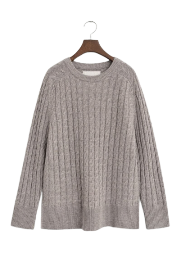 Barevně se vyplatí držet vaší oblíbené neutrální palety: smetanová, šedá, tmavě modrá, khaki nebo tlumené odstíny hnědé. Díky tomu svetr snadno zapadne do každého minimalistického šatníku a bude fungovat jak s kalhotami, tak se sukní.