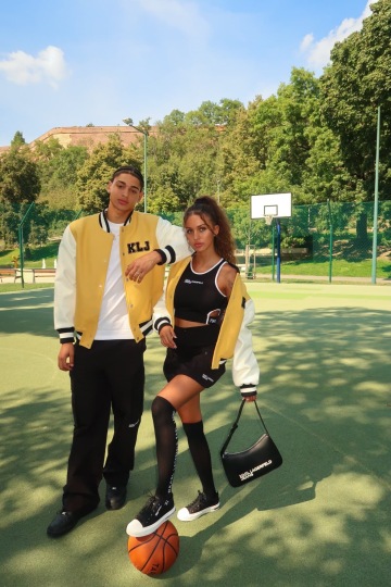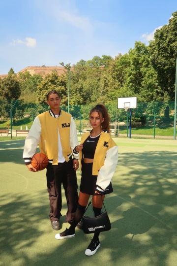Influencerka Carly Kirsten představuje tuhle dynamiku dokonale. V outfitu se stylizovaným univerzitním twistem předvádí Carly moderní rebélii v nadčasovém podání. Černá minisukně a crop top zdůrazňují osobitost, zatímco žlutá univerzitní bunda dodává barevný kontrast. Černá kabelka se postará o klasickou Lagerfeldovskou sofistikovanost.