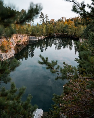 Pokud hledáte méně známé místo, které budete mít zcela jistě jen pro sebe, vydejte se k lomu Řásná na Vysočině. Tento menší zatopený lom s průzračně čistou vodou je obklopený lesy, které na podzim hrají všemi odstíny od žluté po tmavě červenou. Tyrkysová hladina kontrastující s barevným okolím vytváří scenérii, která nadchne každého fotografa. Lom není tak snadno viditelný z hlavní cesty, a právě proto působí, jako by šlo o skrytý poklad.