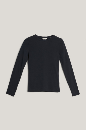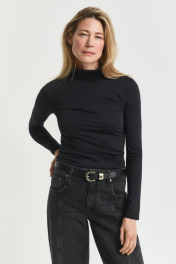 Nahoře stojí v kontrastu černé tričko T-Uncutie Long LS, minimalistické, ale promyšlené do posledního detailu. Dlouhé rukávy s prodlouženou linií prstů vytvářejí tichou eleganci, která místo pózy nabízí gesto. Z loga na hrudi se nestává výkřik, ale značka identity.