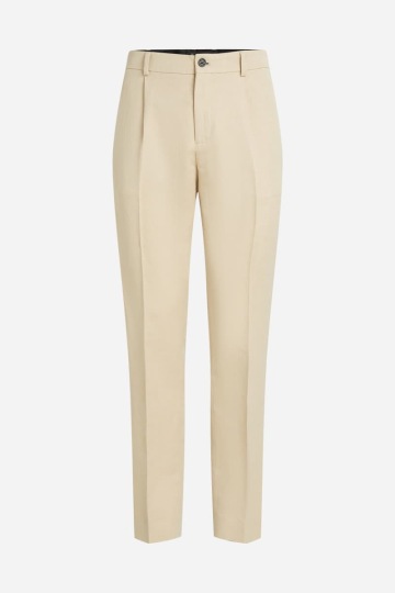 Kalhoty z této kolekce jsou vyrobeny ze stejné směsi bavlny a lnu jako blejzr, což zajišťuje pohodlí po celý den. Slim fit střih vytváří čistý a moderní vzhled, zatímco lehká tkanina poskytuje volnost pohybu a skvěle padne každé postavě. Tento model je ideální volbou pro teplejší dny, kdy chcete být v oblečení, které nejen skvěle vypadá, ale také se pohodlně nosí.