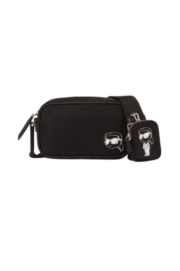 Celý look je doplněn o praktickou a stylovou crossbody kabelku K/Signature Camera Bag s perforovaným logem a kontrastním popruhem KARL LAGERFELD. Nejenže skvěle drží tvar, ale zároveň je i funkčním doplňkem pro každodenní nošení.