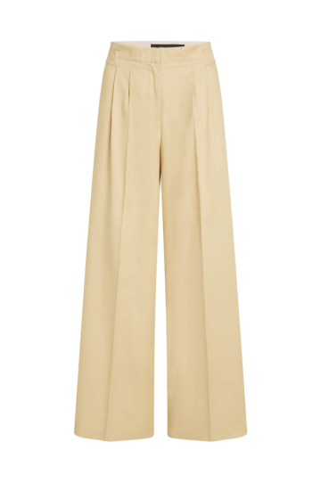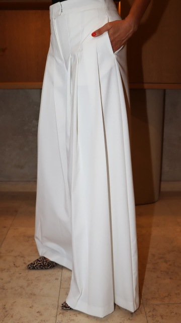 Základem je letní komplet od KARL LAGERFELD – světlý blejzr a kalhoty z kolekce Summer Occasion. Blejzr v odstínu Pristine působí jako čerstvě vyšlehaná šlehačka na espresso – čistý, svěží, jemný. Jeho odlehčená silueta bez zbytečné struktury umožňuje vyniknout tělu i pohybu. Kalhoty tvoří pevný základ – rovný střih, perfektní linie, lehce formální charakter. Je to kontrast, který funguje.