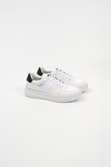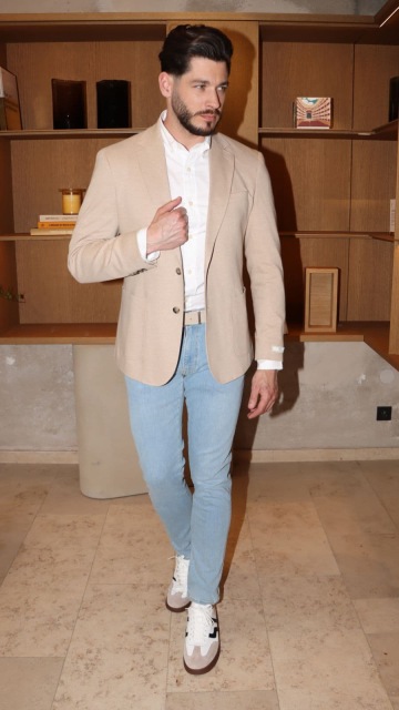 Outfit jsme doplnili koženým páskem GANT Logo Suede Belt v béžovém odstínu, který krásně ladí s tónem saka a přináší do celku jemný kontrast. A nakonec: tenisky Cuzmoon – bílé, moderní, s tmavě modrým detailem. Čistý design, který skvěle uzavírá celý look.