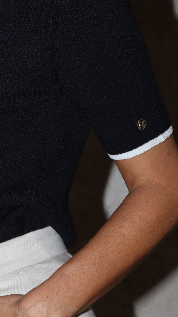 Ne každý den je o formálním dojmu. Když chcete působit uvolněněji, ale stále profesionálně, zkuste vyměnit košili za jemný svetr v kontrastní černé barvě. Minimalistický design krásně zvýrazní ženskou siluetu a v kombinaci s lněnými kalhotami působí chic.