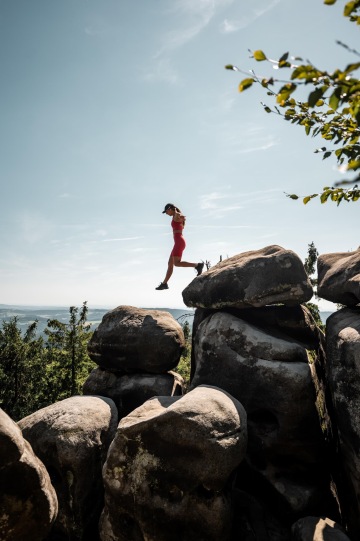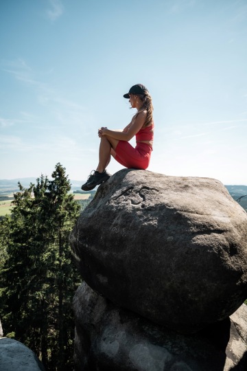 Túry ve skalních městech nejsou nijak fyzicky náročné, ale měli byste zvolit pružné oblečení, ve kterém vám bude pohodlně, protože tu a tam na nějaký balvan určitě polezete. Mohou to být třeba sportovní legíny a podprsenka v kombinaci s lehkými trekovými botami. Odpoledne, až zajde sluníčko, přes sebe můžete hodit oversized bavlněné tričko.