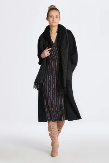 Kombinace dlouhých kabátů a vysokých bot působí sofistikovaně a moderně. Zkuste neutrální tóny a přidejte výraznou kabelku.