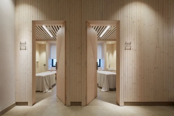 Vytvořit jasný prostor, s logickou orientací, použít přírodní a uvěřitelné materiály a vycházet z historie hlavní budovy lázní – to všechno si vyžadovala nová budova třeboňských lázní, ale především aktivní zapojení architektů. Navrhovat moderní wellness k lázním ze sedmdesátých let není úplně jednoduché zadání. „Pracovaly jsme v Třeboni na dvou menších projektech. Vedení lázní s námi bylo spokojené a oslovilo nás ke spolupráci na výrazně větším projektu, a to právě na novostavbě saunového světa. Byl to trochu komplikovaný projekt, a to nejen svou velikostí, dostaly jsme se k němu totiž až za pět minut dvanáct,“ popisují na začátek našeho setkání Petra s Kateřinou.
