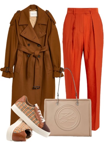 Ak hľadáte niečo výnimočné, čo na ulici alebo v kancelárii nikto neprehliadne, potom ste na správnom mieste! Dúfam, že sa nebojíte farieb, pretože tieto oranžové nohavice KARL LAGERFELD sú úplne úchvatné, nemyslíte? Zamilovali sme sa do nich, rovnako ako do hrdzavého vlneného kabáta GANT, ktorý je strihaný v mierne uvoľnenom strihu, takže v chladnejších teplotách môžete pod neho ďalej vrstviť. Keďže dva výrazné kúsky už máme, zvyšok vzhľadu necháme v jemnejších farbách. Stále však chceme byť výrazní, preto sme sa rozhodli pre hnedo-oranžové a biele topánky GANT so vzorom kohútích stôp a všetko sme doplnili béžovou kabelkou KARL LAGERFELD s jedinečným vypuklým logom, do ktorej si môžete dať všetko, na čo si spomeniete!