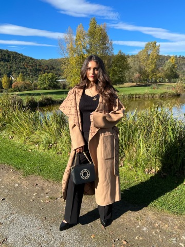 Počas slnečných dní farebnej jesene chodíme na príjemné prechádzky do ulíc a najmä do parkov. Na tieto chvíle je ako stvorený druhý look, v ktorom sa Carly rozhodla skombinovať čiernu a béžovú klasiku so zlatými doplnkami. Obľúbené široké nohavice s basic tričkom doplnila dokonalým a univerzálnym obojstranným kabátom s logom KL z ešte dokonalejšieho mäkkého materiálu, ktorého sa nebudete môcť nabažiť. Na prechádzky pokojne zvoľte topánky na podpätku, ale skvelé budú aj trendy mokasíny.