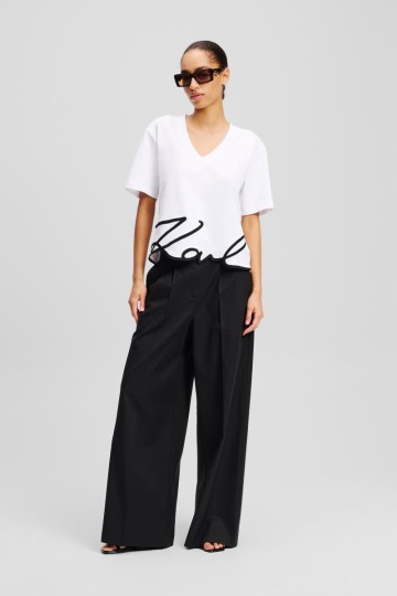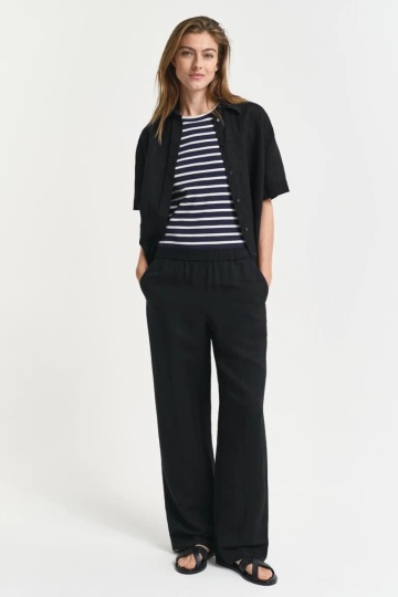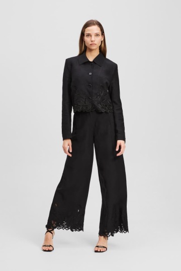 Džínsy sú síce klasikou medzi klasikami, ale na niektoré príležitosti sú jednoducho málo elegantné. Čierne nohavice sú istota, pretože sa hodia úplne ku všetkému. Nám sa osvedčila pružná a tvarovo prispôsobivý variant úzkeho strihu s vyšším sedom. Perfektné, ak nechcete robiť kompromisy medzi vzhľadom a komfortom.