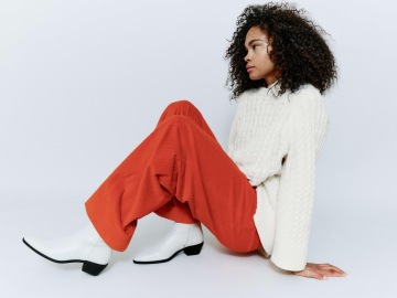 Ochudobnená však nebola ani dámska časť, ktorá sa sústredí predovšetkým na eleganciu a glamour 80. rokov 20. storočia. Čakajte tak dlhé kabáty, prepracované nohavicové kostýmy, ale nechýbajú ani uvoľnenejšie kúsky v podobe hrejivých svetrov alebo trendy široké nohavice
